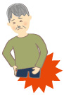 脊椎の神経が圧迫されて炎症が起こる。おなかや股間の筋肉、及び腰椎や腰骨の筋肉の収縮で起こる。